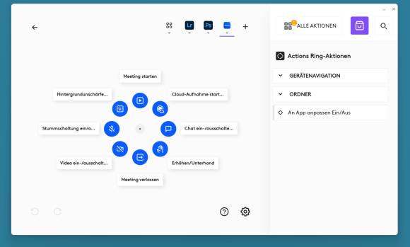 Gut umgesetzt ist das mittlere Scrollrad. Es läuft leise und dreht sich angenehm. Genial ist die Lösung, dass je nach Scrollgeschwindigkeit zwischen präzisem und freiem Scrollen gewechselt wird. Das lässt sich zudem ausschalten oder man wechselt einfach in den Modus, der einem am besten passt. Genauso clever ist der «Actions Ring». Mit ihm kann ich schnell Aktionen wie das Öffnen des Windows-Explorers, das Knipsen von Screenshots oder diverse Photoshop-Aktionen ausführen. Das Beste: Das Rad lässt sich nach Belieben mit anderen Aktionen belegen. Bravo! Nützlich ist ebenfalls der Gesten-Knopf, um etwa Fenster schnell auf einem grossen Monitor anzudocken oder zu minimieren. Weiteres Lob gibt es für die Options+-Software. Alle Maustasten und ‑Räder lassen sich nach Belieben mit individuellen Befehlen belegen. So kreiere ich die perfekte Maus für meine tägliche Arbeit.