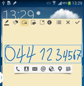 Die unserer Meinung nach nützlichste davon ist die Aktionsmemo. Über diese Funktion können wir eine handschriftliche Notiz erfassen, um den Inhalt der Memo dann sofort für eine bestimmte Aktion zu verwenden. Beispiel: Wir notieren uns mit dem Stift eine Telefonnummer, um diese dann sogleich anzurufen. Der eingegeben Text, der per Handschrifterkennung erkannt wird, kann beispielsweise auch per SMS oder E-Mail verschickt oder für eine Internetsuche verwendet werden.