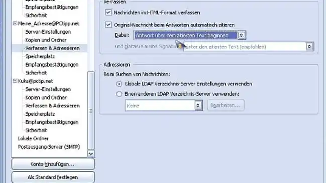 Thunderbird: Antworten über dem zitierten Text in der Nachricht