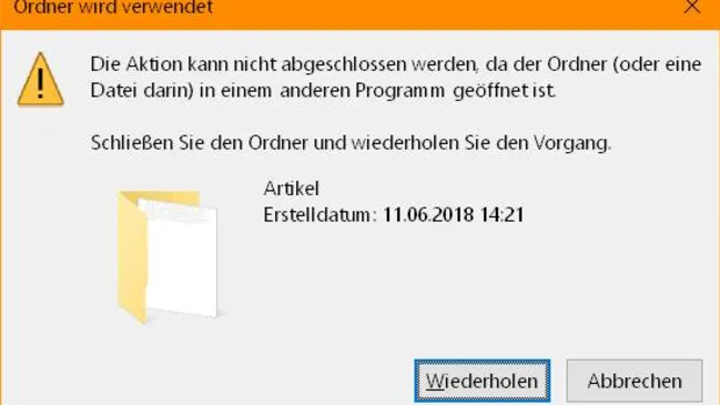 Ein Löschen/Umbenennen von Dateien und Ordnern schlägt fehl, wenn ein anderes Programm draufsitzt. Finden Sie heraus, welches.