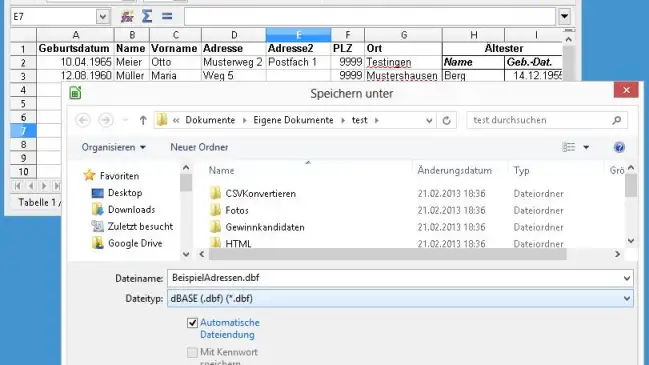 Excel-Datei als .dbf-Datei speichern