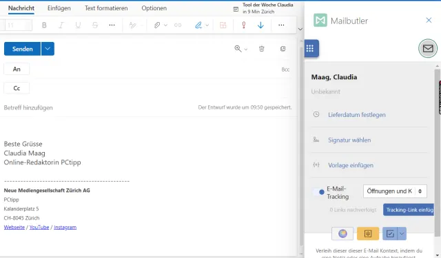 Quelle: Screenshot/PCtipp.chIn diesem Video ist ebenfalls erklärt, wie Sie E-Mail-Tracking aktivieren: