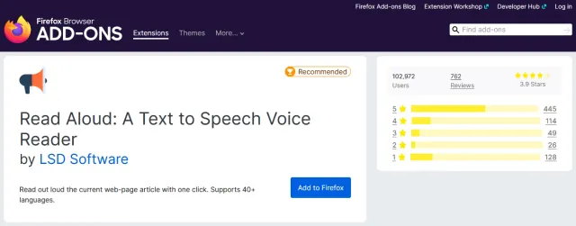 Read Aloud ist eine KI-gestützte (KI = Künstliche Intelligenz) Text-to-Speech-Software (=TTS, Sprachlese-Software), die gleich mehrere nützliche Funktionen vereint. Die Applikation kommt als Add-on für den Firefox- wie auch Chrome-Webbrowser. Unter anderem sind folgenden Features integriert: