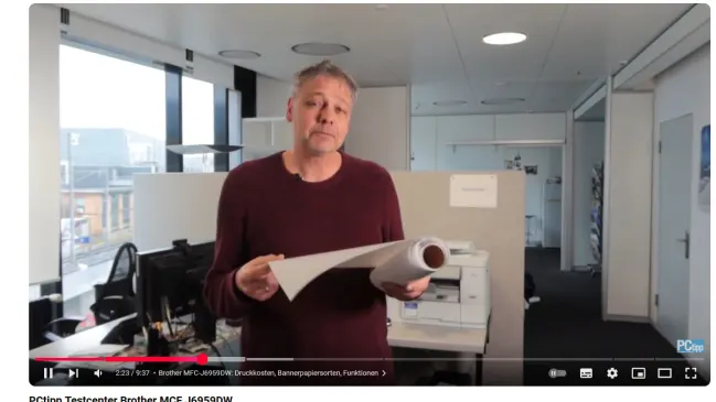 In diesem PCtipp-Academy-Video verrät Redaktor Daniel Bader, wie man mithilfe des 4-in-1-Tintenmultifunktionsgeräts Brother MFC-J6959DW übergrosse Banner auf Fotopapier drucken kann.