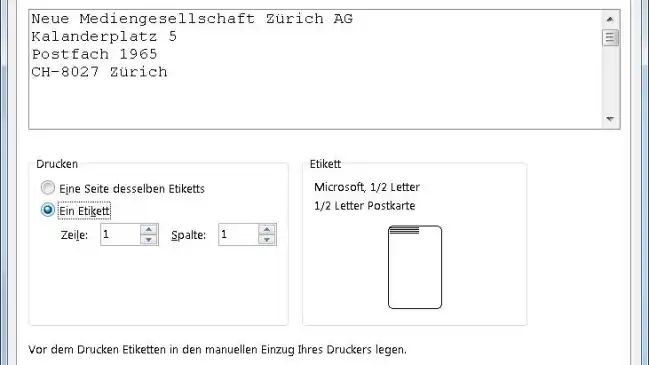 Etikettenbögen sind teuer. Darum wollen Sie auch beim Druck einzelner Adressen möglichst noch die restlichen Etikettenaufkleber des angefangenen Bogens benutzen.