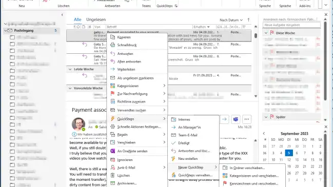 Schon wieder eine dieser lästigen Erpresser-Mails! Ab sofort melde ich diese konsequent: Zeit, einen QuickStep einzurichten, der solche Mails mit wenigen Klicks an die zuständige Behörde weiterleitet. Aufgepasst: Es funktioniert nur fast auf Anhieb.
