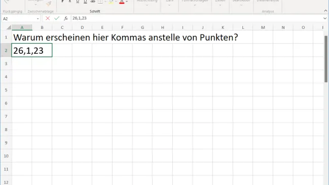 Beim Erfassen von Kalenderdaten oder Beträgen stellen Sie fest, dass Ihr Ziffernblock in Excel im Webbrowser ein Komma ausgibt anstelle des Dezimalpunktes.