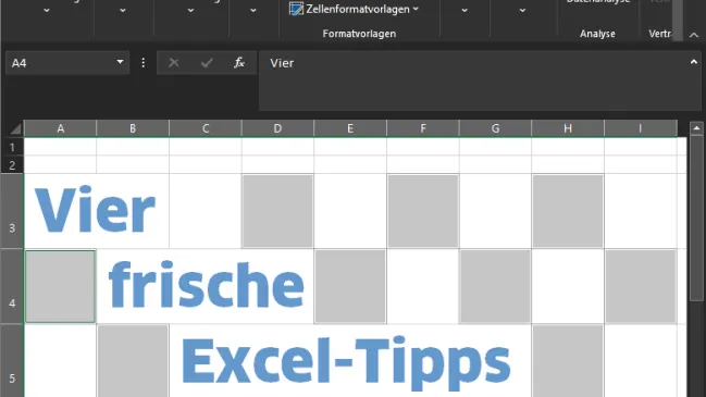 Wieder einmal ein paar kleine Excel-Tipps für zwischendurch: Wochentage anzeigen oder hervorheben, Hundertstelsekunden und die praktischen Zellnamen.