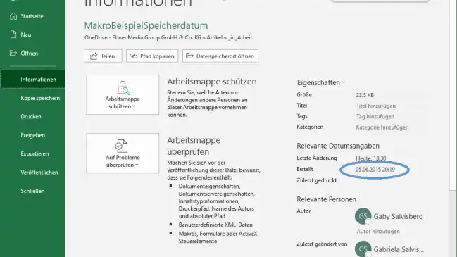 Vielleicht entdecken Sie in einigen Ihrer Excel-Arbeitsmappen ebenfalls das Erstelldatum «05.06.2015, 20:19 Uhr», obwohl die Datei laut Ihrem Wissen viel neuer ist. Dieser «Bug» liegt an einem merkwürdigen Zusammenspiel zwischen Excel, Windows und Ihnen.