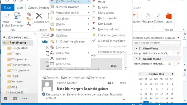 Outlook hat eine interessante Funktion, die einigen anderen Mailprogrammen (zunächst) fehlt: die Wiedervorlage. Das geht so in Outlook und Thunderbird.