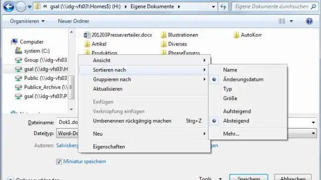 Sei es in Word oder im Firefox: Aus irgend einem Grund sind manchmal die angezeigten Ordner und Dateien im Speichern-Dialog nicht alphabetisch. So beheben Sie das.