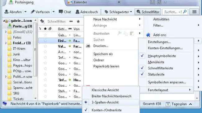 Thunderbird: Dreispaltige Ansicht verloren