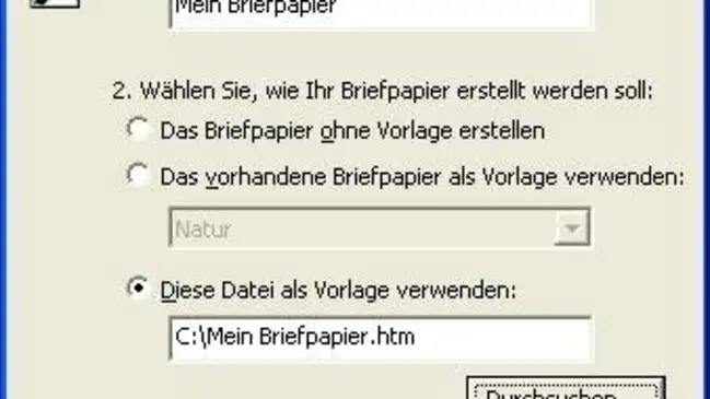 Ich möchte im Outlook mein eigenes Briefpapier definieren. Unter «Extras/ Optionen» habe ich auch das entsprechende Menü gefunden. Hier kann ich allerdings nur vorgefertigte Vorlagen benutzen (z.B. Efeu) oder eine andere Hintergrundfarbe wählen. Kann ich eine solche Vorlage auch selbst fertigen? Zum Beispiel mit einem Bild oder Logo oben rechts und einer beliebigen Hintergrundfarbe?