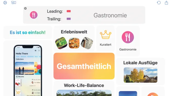 Apple setzt bei der Fotografie und Grafik immer wieder Massstäbe. So erleben die «Bento-Grafiken» einen wahren Boom, indem die wichtigsten Elemente eines Produktes oder Vortrags in abgerundeten Rahmen präsentiert werden.