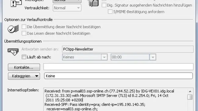 Der Header bzw. die Kopfzeilen können Aufschluss über die wahre Herkunft einer Mail geben. Aber in Outlook ist diese Information extrem gut versteckt.