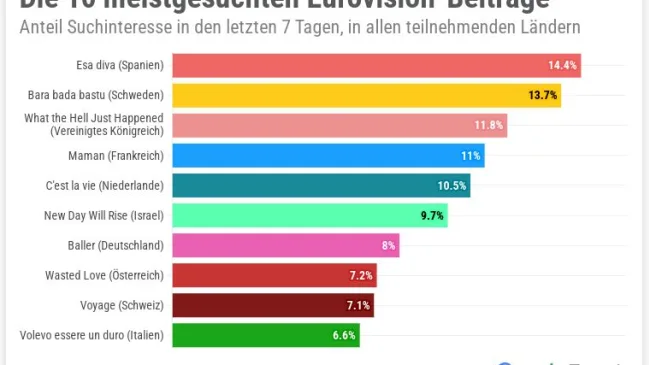 Am 13. Mai startet der 69. Eurovision Song Contest in Basel. Google hat die Suchanfragen rund um den Anlass ausgewertet. Die daraus resultierenden Rankings geben Auskunft darüber, welche Künstler, Songs und Fragen zum ESC am meisten bewegen.