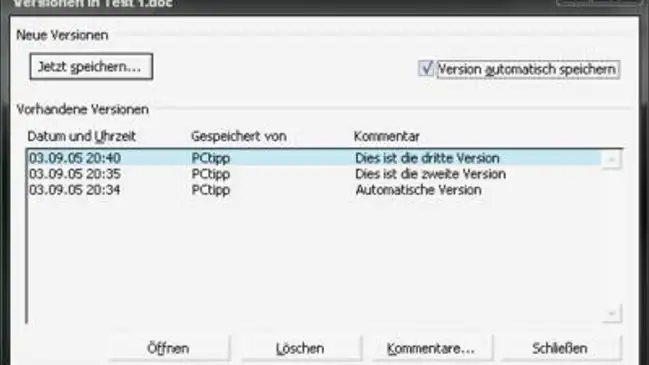 Word: Verschiedene Versionen speichern