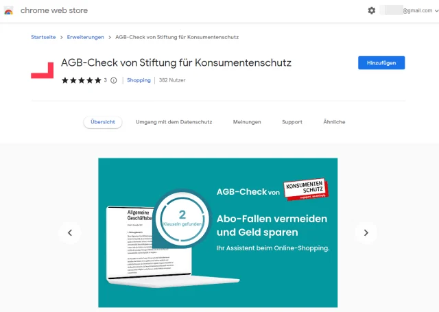 Das AGB-Check-Tool gibts jetzt auch als Browsererweiterung für Chrome und Firefox. So werden Sie beim Onlineshopping noch einfacher auf problematische Klauseln aufmerksam gemacht.