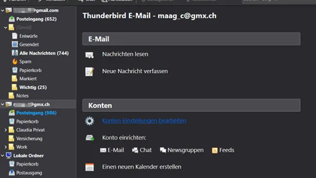 Mit Gmail arbeitet Thunderbird mittlerweile gut zusammen. Etwas schwieriger ist es, ein IMAP-/POP3-E-Mailkonto – wie beispielsweise GMX – hinzuzufügen. So gehts.