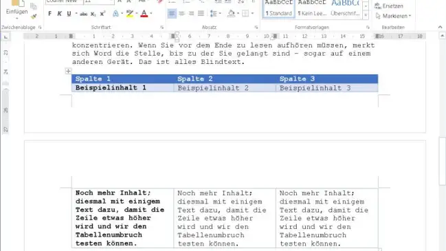 Word: Tabelle bei Seitenumbruch (nicht) teilen