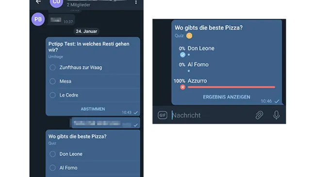 In welches Restaurant man am Samstagabend möchte, ist mit Umfragen rasch(er) ermittelt. Neu kann man sehen, wer wie abgestimmt hat, es sind Mehrfachantworten und ein Quiz möglich.