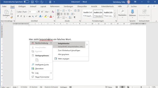 Sie vertippen sich bei einem bestimmten Wort regelmässig. Fügen Sie es direkt aus der Rechtschreibprüfung zur AutoKorrektur hinzu, damit Word oder der LibreOffice Writer es künftig von sich aus korrigiert.