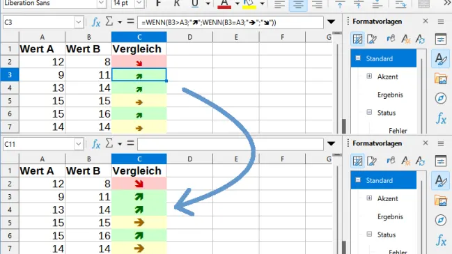 Hat man in LibreOffice Calc etwa über eine bedingte Formatierung eine Zellvorlage verwendet, basiert diese stets auf einer anderen Vorlage, die z. B. eine andere Schriftgrösse aufweist. Wie passt man dies nun nachträglich an?