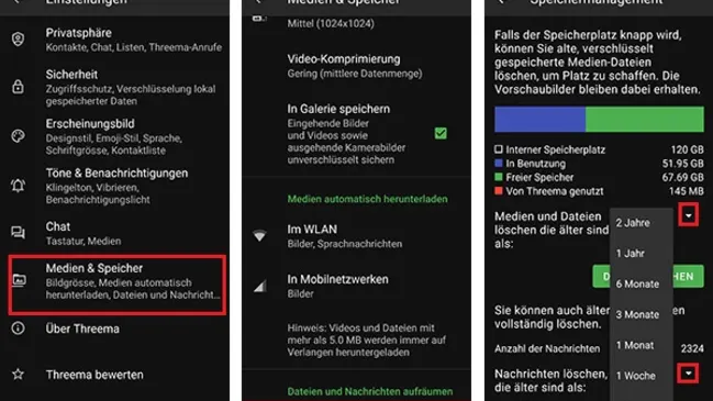 Falls der Speicherplatz knapp wird, können Sie alte Mediendateien im Messenger Threema löschen.