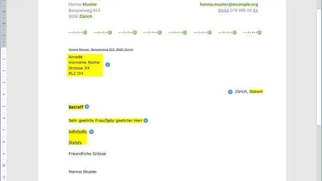 Mit diesen Tipps erstellen Sie eine Briefvorlage, in der Sie beim Verfassen eines neuen Briefes direkt auf Felder wie Betreff, Anrede, Brieftext springen können.