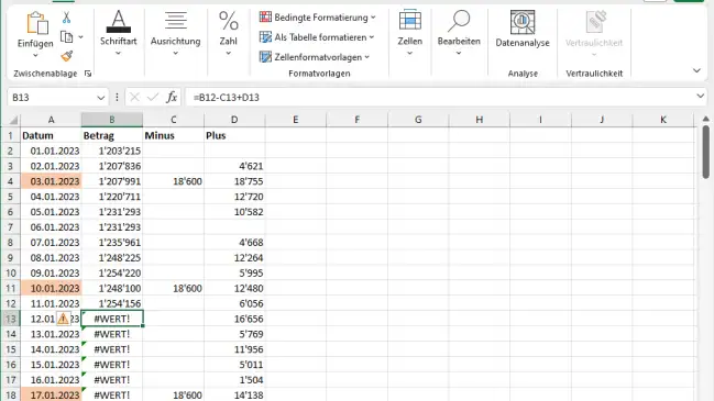 In einer Tabellenspalte führen Sie eine simple Addition durch, die auch leere Zellen enthalten kann. Eigentlich simpel genug. Aber was, wenn Excel hier überraschend #WERT-Fehler ausspuckt?