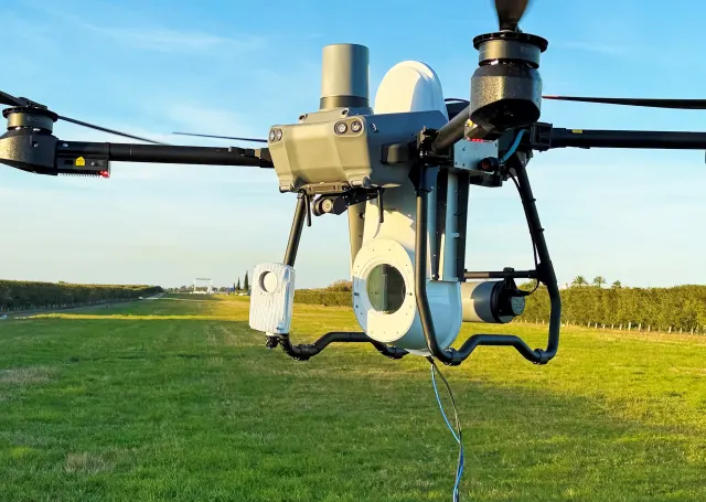 Auf dem Mobile World Congress demonstriert Vodafone unter anderem, wie Drohnen mit Lasertechnik die Verbindung zwischen dem Festnetz und Mobilfunk herstellen können.
