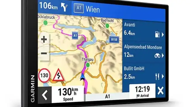 Das Navi bietet 3D-Europakarten, Live-Verkehrsinfo via Garmin-Drive-App, Smart Notifications, Bluetooth-Freisprechfunktion und den integrierten Garmin-Sprachassistenten.