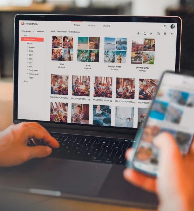 Ein NAS ist ein ins Netzwerk eingebundener Dateiserver, auf dem man seine Dokumente, Fotos, Videos etc. speichern und allen Nutzerinnen und Nutzern im Heimnetzwerk zur Verfügung stellen kann. Ein Synology-NAS kommt aber auch mit vielen kostenlosen Apps und Funktionen, die unter anderem den Fernzugriff oder das Streamen von Musik und Filmen möglich machen.