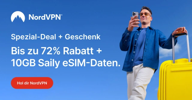 Jetzt 72 % Rabatt auf NordVPN + gratis eSIM-Daten als Geschenk sichern