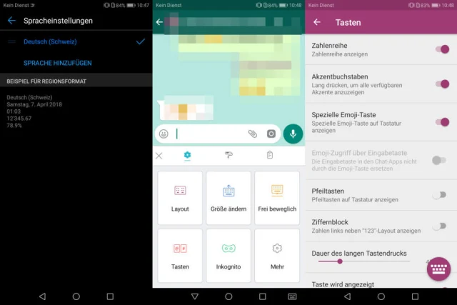 Schnelle Antwort: Wenn diese auf Schweizerdeutsch so oft verwendeten Tasten nicht auf den ersten Blick ersichtlich sind, verstecken sie sich hinter A, O und U als Zweitbelegung. Tippen Sie z.B. auf den Buchstaben A und bleiben Sie drauf. Die weiteren Optionen werden dann eingeblendet. Dauert Ihnen das jeweils zu lange? So erscheinen ä, ö und ü als native Tasten.
