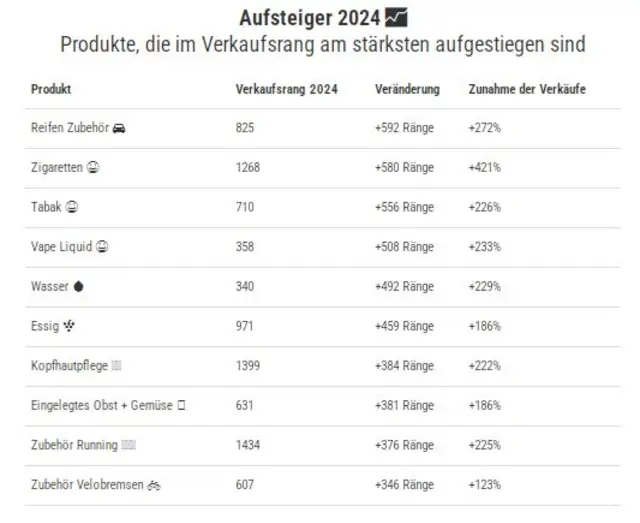 Galaxus und Digitec haben 2024 mehr als 2’200 verschiedene Produkttypen verkauft, vom Langlaufski über Roboterstaubsauger bis zu Kinderbüchern. Auf den hinteren Verkaufsrängen zeigt sich ein Trend, der auf die Lunge schlägt: Die Galaxus-Kundschaft hat 2024 deutlich mehr Raucherwaren bestellt: Der Verkauf von Zigaretten stieg – auf tiefem Niveau – um mehr als das Vierfache. Tabak und Vape Liquid gingen mehr als dreimal so häufig in die Versandpakete als im Jahr zuvor – Bedenken bezüglich der Gesundheit zum Trotz. Immerhin haben Minderjährige bei Galaxus aufgrund der Alterskontrolle keine Chance auf Erfolg, wenn sie Tabak oder Alkohol bestellen wollen.