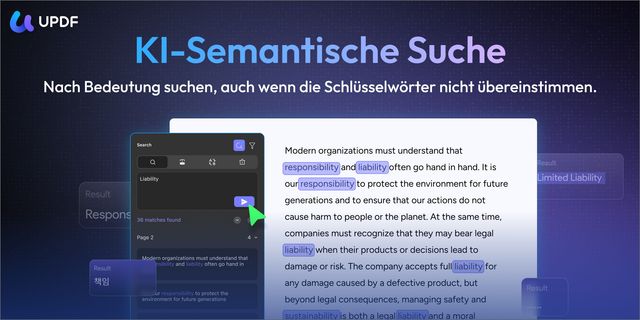 Geht über klassische Stichwortsuche hinaus und nutzt ein tiefes kontextbasiertes Verständnis, sodass selbst vage Suchanfragen direkt zur richtigen Stelle im Dokument führen.