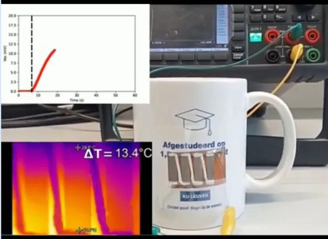 Forscher der Katholischen Universität Löwen um Francisco Molina-Lopez haben einen thermoelektrischen Generator (TEG) gebauen, der flexibel wie ein Band ist und sich um eine Tasse mit heissem Kaffee oder den warmen Arm eines Menschen legen kann. Bisher waren Geräte dieser Art vollkommen starr, sodass sie zerbrachen, wenn sie auch nur ein bisschen verbogen wurden.