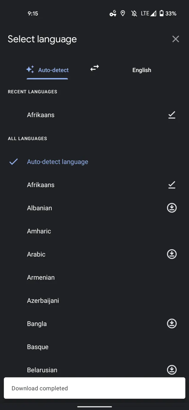 Ob die Funktion bei Ihnen bereits verfügbar ist, überprüfen Sie folgendermassen: Tippen Sie in der Google-Lens-App auf den Tab Übersetzen sowie anschliessend auf den Button Automatisch erkennen. Sobald Sprachen auch offline zur Verfügung stehen, befindet sich rechts davon ein Download-Button.
