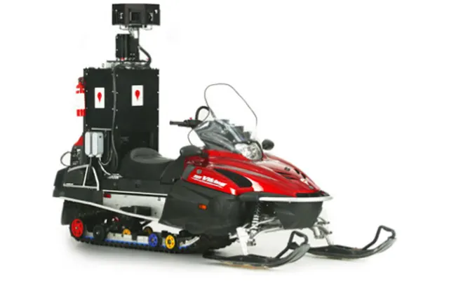 Das Google-Team befestigte die Street-View-Ausrüstung mit Kanthölzern, Panzerband und mehr auf einem Schneemobil