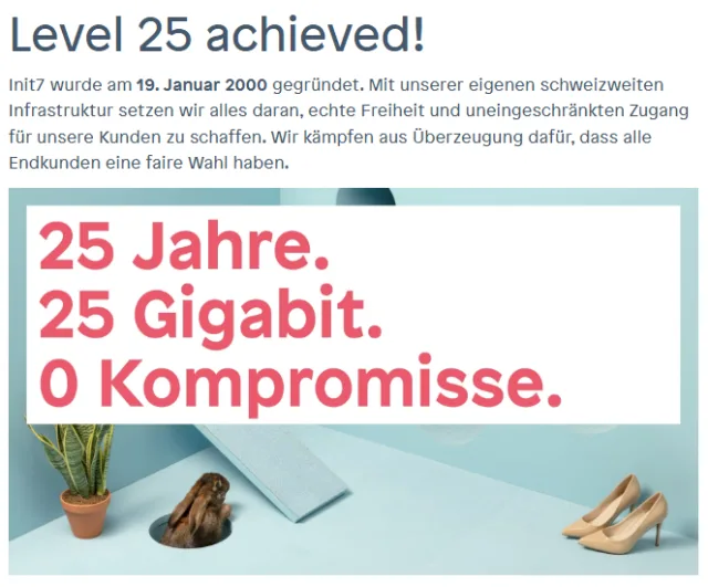 Init7 feiert das 25-jährige Jubiläum mit seinen bestehenden und zukünftigen Kunden. Das gilt ab sofort: