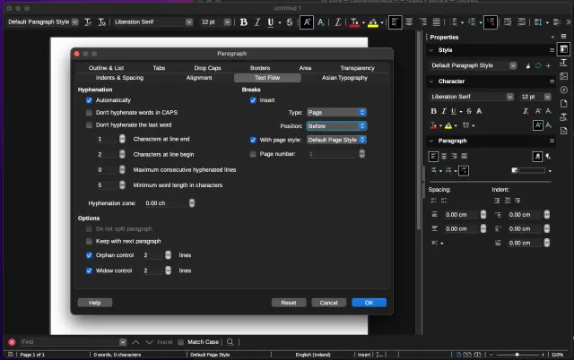 Der Dunkelmodus in LibreOffice 7.5 auf einem Mac