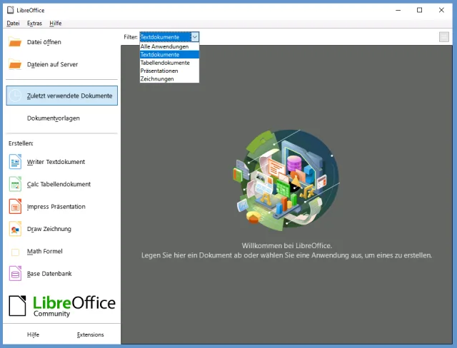 Quelle: PCtipp.chNeuer Filter: Beim Ausführen der LibreOffice-Hauptanwendung (dem sogenannten Startcenter) waren schon vorher Verknüpfungen zu kürzlich benutzten Dokumenten verfügbar.