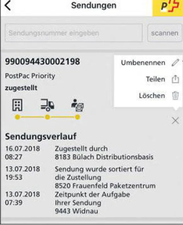 Mit der Post-App seine Päckli verfolgen