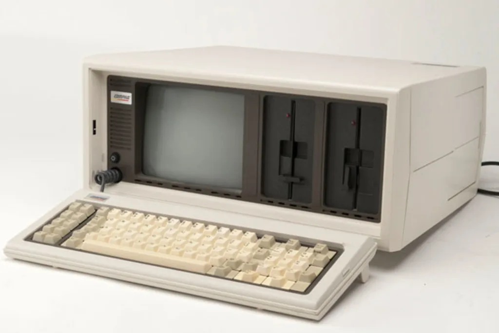 1983 – Debüt des Compaq PortableNur ein Jahr zuvor gegründet, wagt Compaq den ersten Schritt auf den Markt mit einem neuen PC – das erste, tragbare IBM-kompatible System und damit ein Vorläufer des modernen Mobile Computings. Compaq wurde daraufhin zu einer der grössten Firmen in der PC-Industrie – und zwei Jahrzehnte später von Hewlett-Packard (HP) aufgekauft.Bild: der Compaq Portable