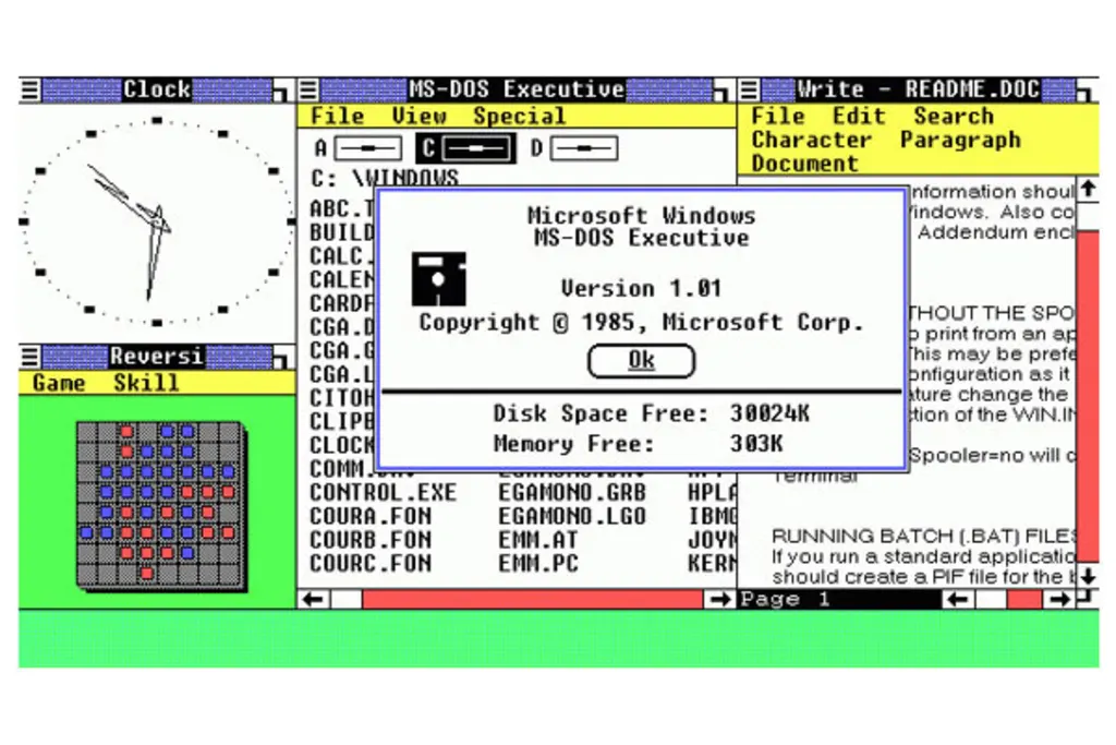 1985 – Windows 1.0 wird veröffentlichtErstmals munkelte man schon zwei Jahre zuvor über das mögliche Release einer Software namens Windows. Auch bis ins kommende Jahr hinein schenkt kaum jemand dem Programm Beachtung – niemand ahnt zu diesem Zeitpunkt, dass dieser eher plumpe, grafische Dateimanager sich einmal zum grössten und am weitesten verbreiteten Betriebssystem der Welt entwickeln würde.
