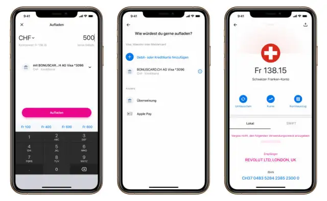 Kostenlos sind hingegen Banktransfers, die in der Schweiz gerade erst seit Dezember 2018 möglich sind. Dazu wählen Sie im Bildschirm mit der Zahlungsmethode den Punkt «Überweisung». Übertragen Sie die gewünschte Summe auf das Revolut-Konto bei der Credit Suisse, indem Sie die angezeigte IBAN verwenden. Doch Vorsicht: Diese IBAN gilt für alle Revolut-Kunden in der Schweiz. Deshalb ist es unbedingt nötig, dass Sie eine Mitteilung an den Empfänger eingeben, die aus Ihrer persönlichen Revolut-Nummer besteht – nur so landet das Geld auf Ihrem Konto.