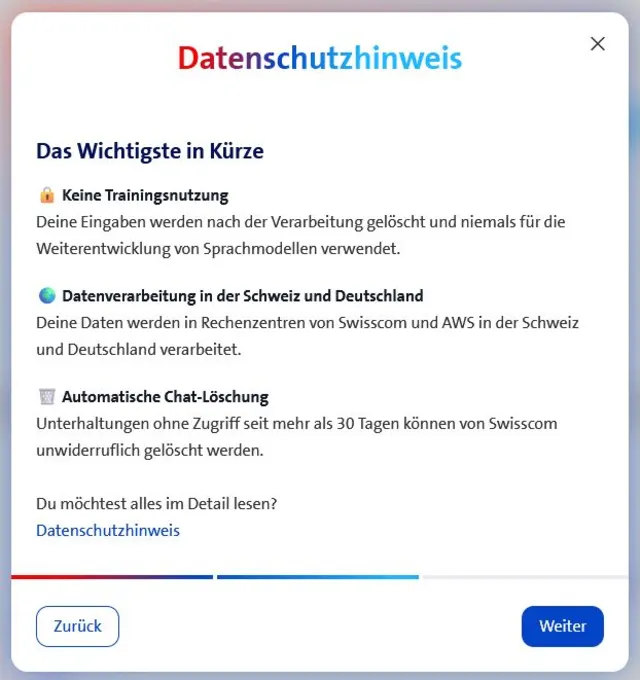 Im Unterschied zu internationalen Plattformen garantiert Swisscom, dass Nutzerdaten nicht für das Training von Sprachmodellen, Profiling-Zwecke oder zur Weiterverarbeitung bei Dritten verwendet werden. Die Datenverarbeitung erfolgt auf AWS-Infrastruktur (Amazon Web Services), bleibt aber vollständig unter Kontrolle von Swisscom. Mit myAI verfolgt Swisscom die Vision, einen digitalen Begleiter zu schaffen, der den Alltag spürbar erleichtert – für alle, die hohen Wert auf einfache Bedienung, Transparenz und lokale Verankerung in der Schweiz legen.