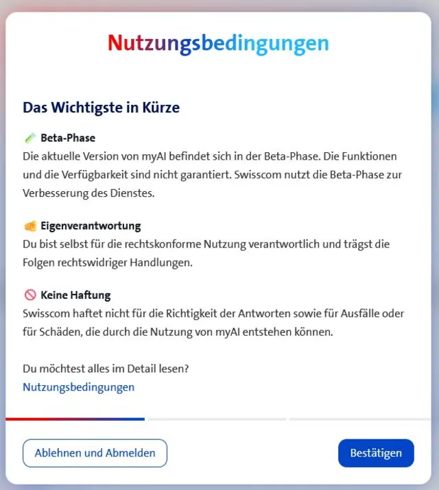 «myAI ist unsere Antwort darauf, wie KI aussehen soll: vertrauenswürdig, verständlich und kundenorientiert. Ganz im Sinne von «Entdecke, was du kannst», verbinden wir Innovation mit Vertrauen und übernehmen Verantwortung für eine sichere, digitale Zukunft», so Dirk Wierzbitzki, Leiter Privatkunden bei Swisscom und Mitglied des ExCo Schweiz.