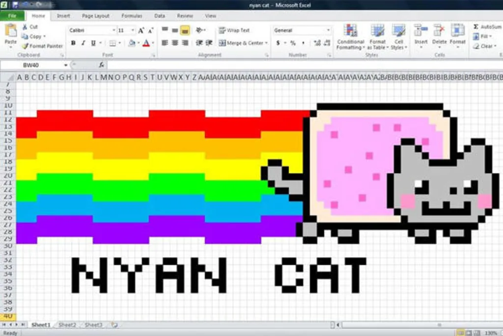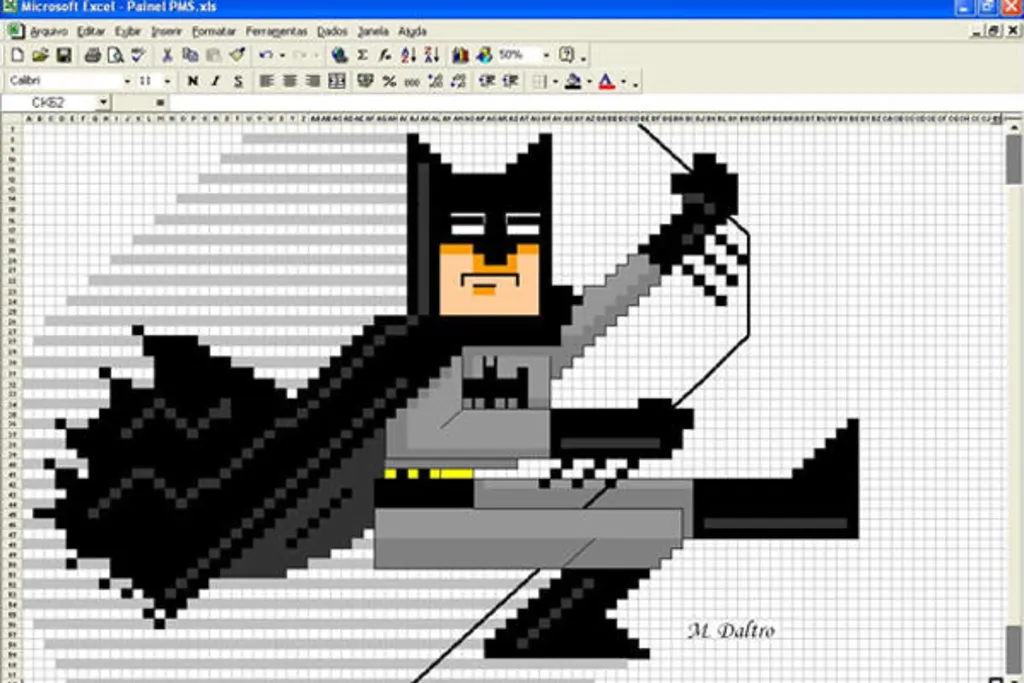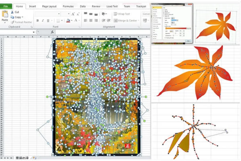 Der japanische Künstler Tatsuo Horiuchi malt wirklich alle seine Bilder in Excel. Grafikprogramme wie Photoshop waren ihm jedoch zu teuer. Stattdessen blieb er bei Excel und nutzte Autoshapes: die in Excel integrierten Symbol- und Farbwerkzeuge. Überzeugen Sie sich selber von seinen komplexen Bildern anhand dieser Originaldatei.